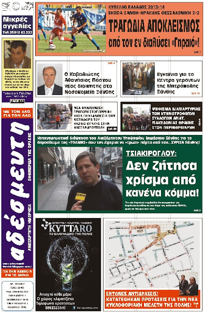 ΠΡΩΤΟΣΕΛΙΔΟ ΕΦΗΜΕΡΙΔΑΣ 1 ΝΟΕΜΒΡΙΟΥ 2013