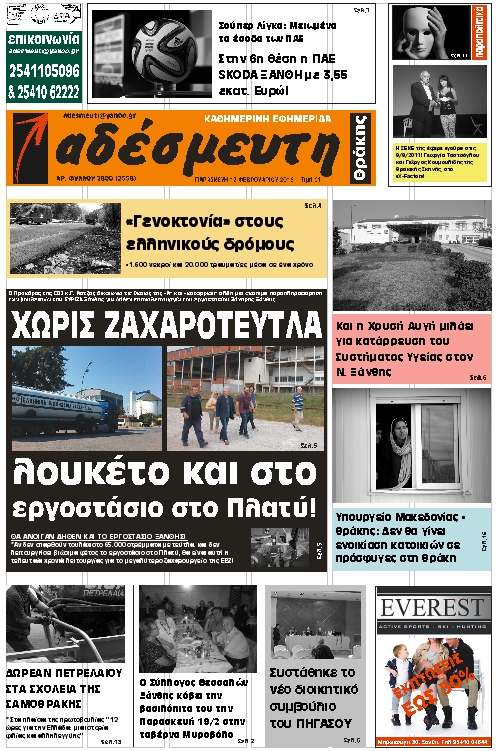 ΠΡΩΤΟΣΕΛΙΔΟ ΕΦΗΜΕΡΙΔΑΣ 12 ΦΕΒΡΟΥΑΡΙΟΥ 2016
