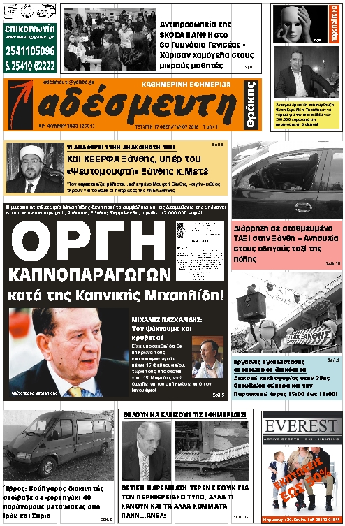 ΠΡΩΤΟΣΕΛΙΔΟ ΕΦΗΜΕΡΙΔΑΣ 17 ΦΕΒΡΟΥΑΡΙΟΥ 2016