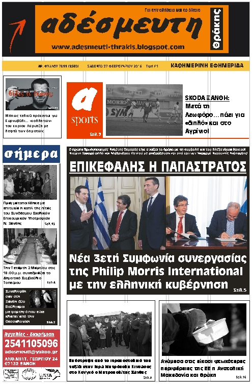 ΠΡΩΤΟΣΕΛΙΔΟ ΕΦΗΜΕΡΙΔΑΣ 27 ΦΕΒΡΟΥΑΡΙΟΥ 2016