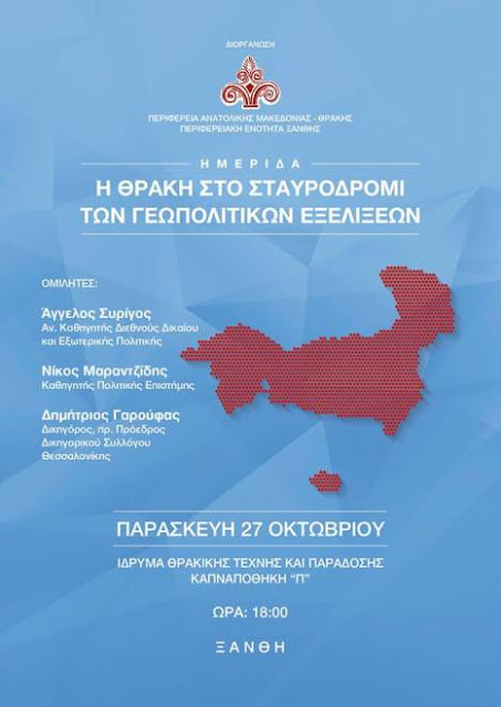 Παράδοσης με θέμα: «Η Θράκη στο Σταυροδρόμι των γεωπολιτικών εξελίξεων» διοργανώνει