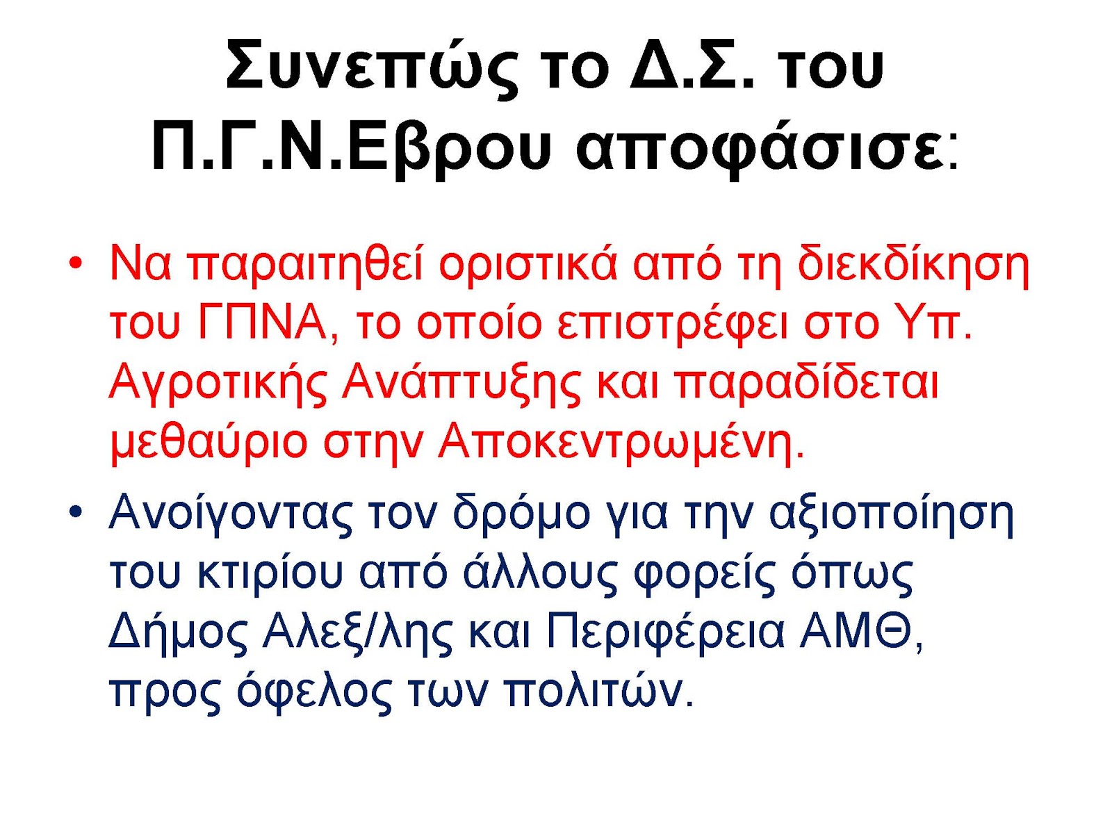 Αλεξανδρούπολης, στο Υπουργείο Αγροτικής Ανάπτυξης.