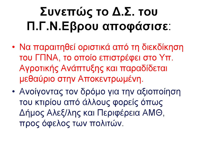 Νοσοκομείου Αλεξανδρούπολης αποφάσισε την παραχώρηση του Παλιού Νοσοκομείου