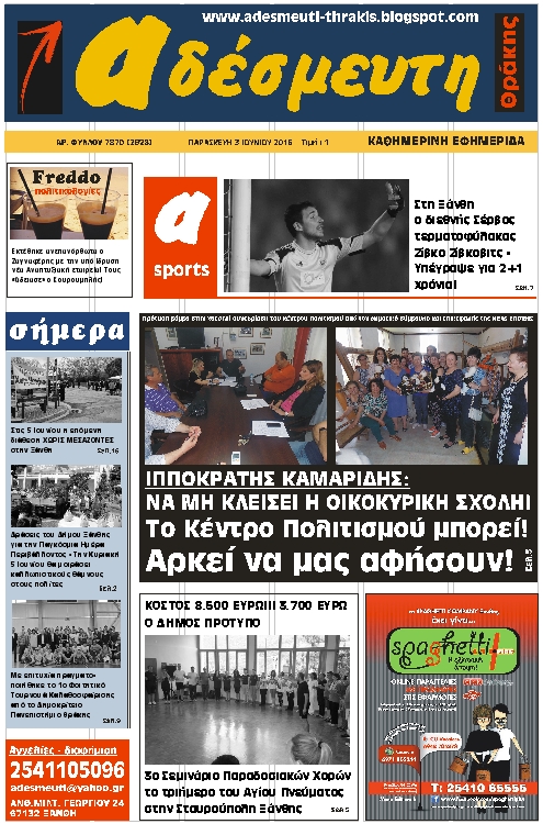 ΠΡΩΤΟΣΕΛΙΔΟ ΕΦΗΜΕΡΙΔΑΣ 3 ΙΟΥΝΙΟΥ 2016