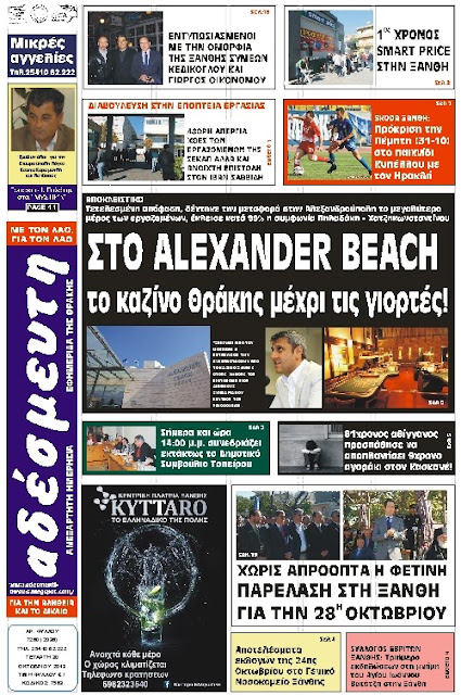 ΠΡΩΤΟΣΕΛΙΔΟ ΕΦΗΜΕΡΙΔΑΣ 30 ΟΚΤΩΒΡΙΟΥ 2013