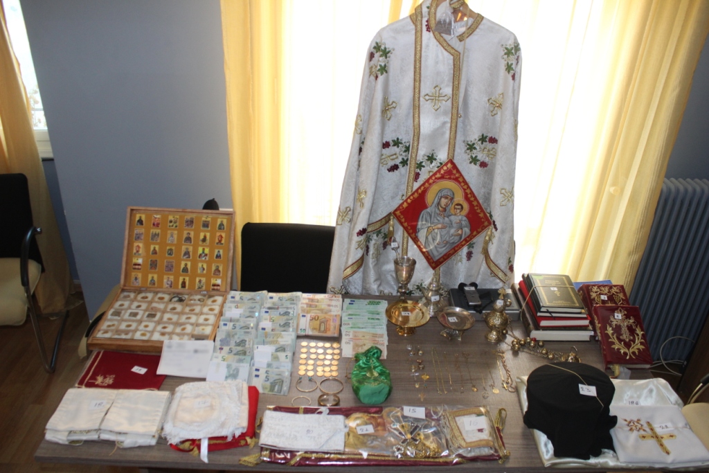 Από τον παραπάνω χώρο κατασχέθηκαν πλήθος εκκλησιαστικών ειδών (εικόνες αγίων, σταυροί, εκκλησιαστικά σκεύη, άμφια κ.α.)