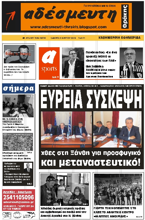 ΠΡΩΤΟΣΕΛΙΔΟ ΕΦΗΜΕΡΙΔΑΣ 5 ΜΑΡΤΙΟΥ 2016