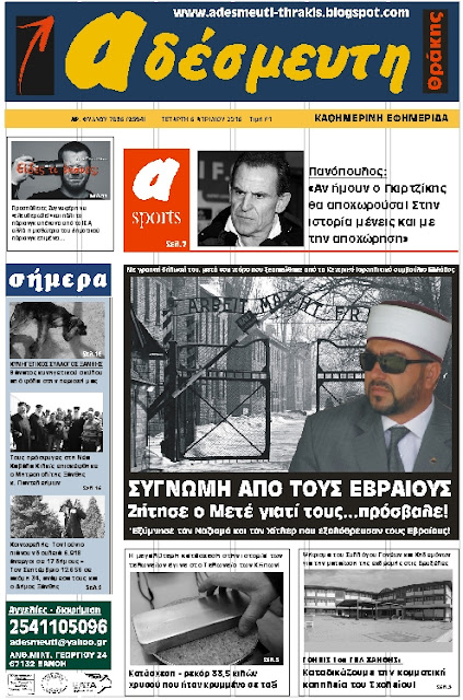 ΠΡΩΤΟΣΕΛΙΔΟ ΕΦΗΜΕΡΙΔΑΣ 6 ΑΠΡΙΛΙΟΥ 2016