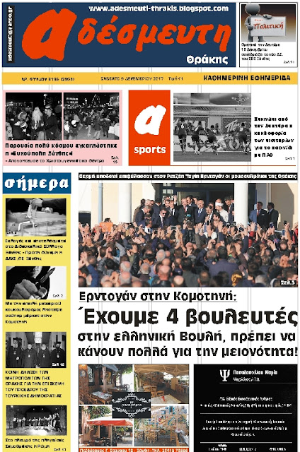 ΠΡΩΤΟΣΕΛΙΔΟ ΣΑΒΒΑΤΟ 9 ΔΕΚΕΜΒΡΙΟΥ 2017