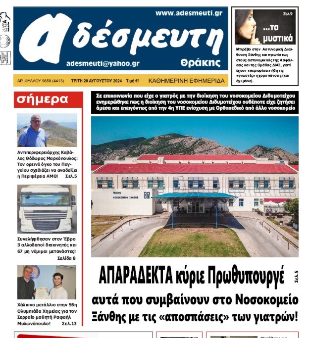 ΠΡΩΤΟΣΕΛΙΔΟ ΤΕΤΑΡΤΗ 21 ΑΥΓΟΥΣΤΟΥ 2024
