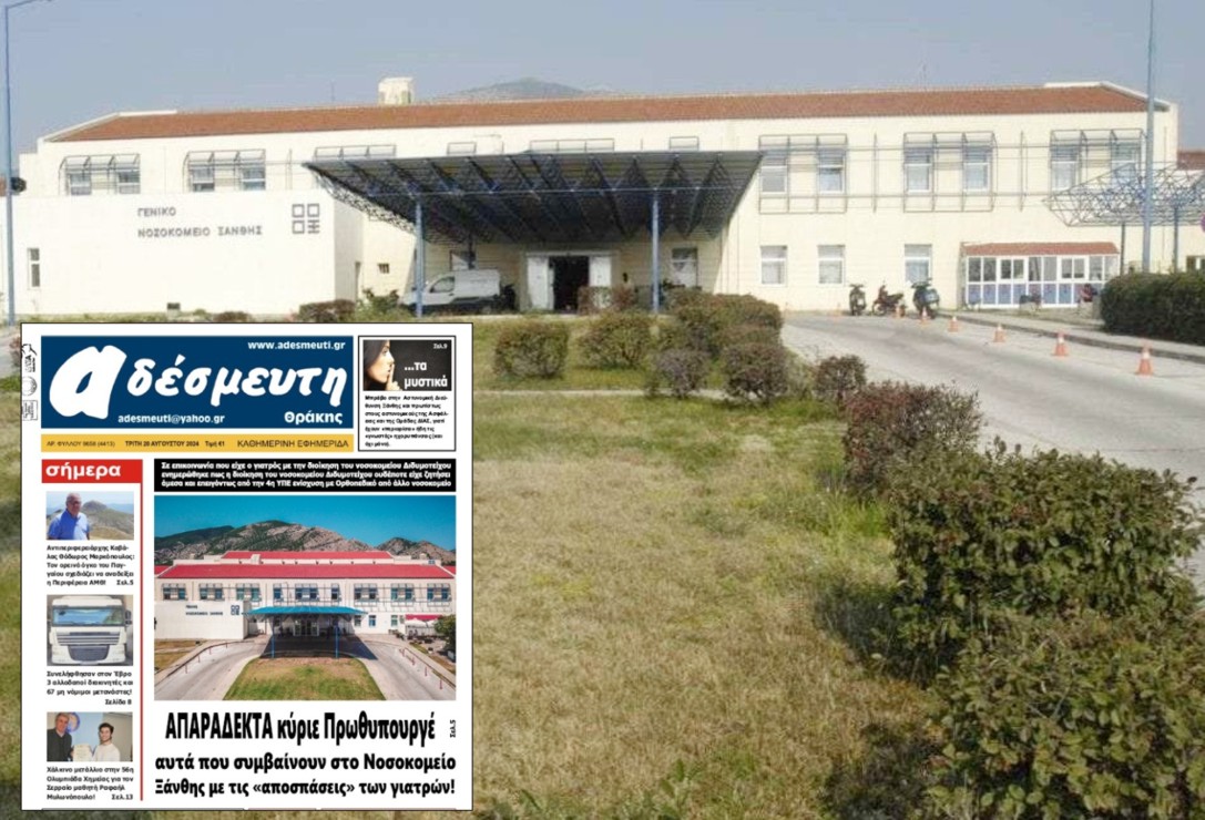 Απαράδεκτα αλλά συγχρόνως και απίστευτα είναι αυτά που «συμβαίνουν» με την αποψίλωση του Νοσοκομείου Ξάνθης και μάλιστα με «περίεργες» αποσπάσεις παραμονές του… 15Αυγουστου, αφού «απέσπασαν» με την υπογραφή του πρώην διοικητή Ορθοπεδικό του Νοσοκομείου Ξάνθης στις 13 Αυγούστου 2024 στο Νοσοκομείο Διδυμοτείχου, χωρίς αυτό να ζητήσει… απόσπαση γιατρού!!!