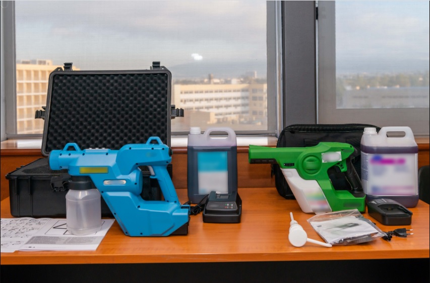 Πρόκειται για συσκευές ηλεκτροστατικού ψεκασμού για την απολύμανση επιφανειών, οχημάτων κ.λπ., οι οποίες συνοδεύονται με δέκα λίτρα απολυμαντικό υγρό η καθεμία.