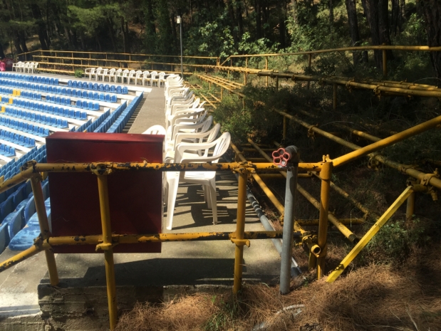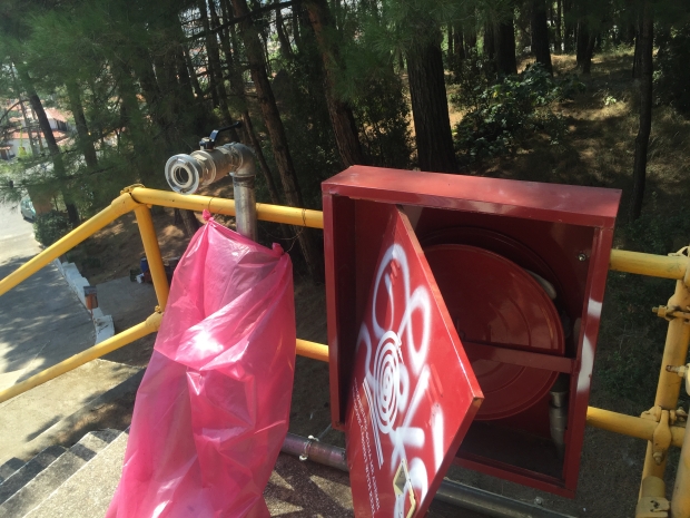 Πλην όμως με την ευκαιρία θεατρικής παράστασης την οποία παρακολούθησα στο υπαίθριο δημοτικό θέατρο στο περιαστικό άλσος  διαπίστωσα ιδίοις όμμασι ότι οι πουροσβεστικές φωλιές που είναι εγκατεστημένες στο περιβάλλοντα χώρο είναι αφενός εμφανώς παραμελημένες και αφετέρου και κατά κύριο λόγο επί της ουσίας δεν είναι προς χρήση και λειτουργία αφού δεν υφίσταται υδροδότηση γεγονός που έγινε φανερό όταν δοκίμασα όλες τις βάνες και δεν έτρεξε σταγόνα νερό. Επιπρόσθετα αναφέρω ότι  δεν έχει γίνει καμία φροντίδα αποψίλωσης και καθαριότητας πέριξ του χώρου με αποτέλεσμα να βρίθει απο αγριόχορτα και ξερές πευκοβελόνες.