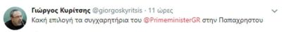 «Κακή επιλογή» χαρακτήρισε ο βουλευτής του ΣΥΡΙΖΑ Γιώργος Κυρίτσης τα συγχαρητήρια που έδωσε ο πρωθυπουργός στην πρωταθλήτρια Βούλα Παπαχρήστου λόγω των κομματικών της πεποιθήσεων για την επιτυχία της να κατακτήσει το χρυσό μετάλλιο στο Ευρωπαϊκό Πρωτάθλημα Στίβου.