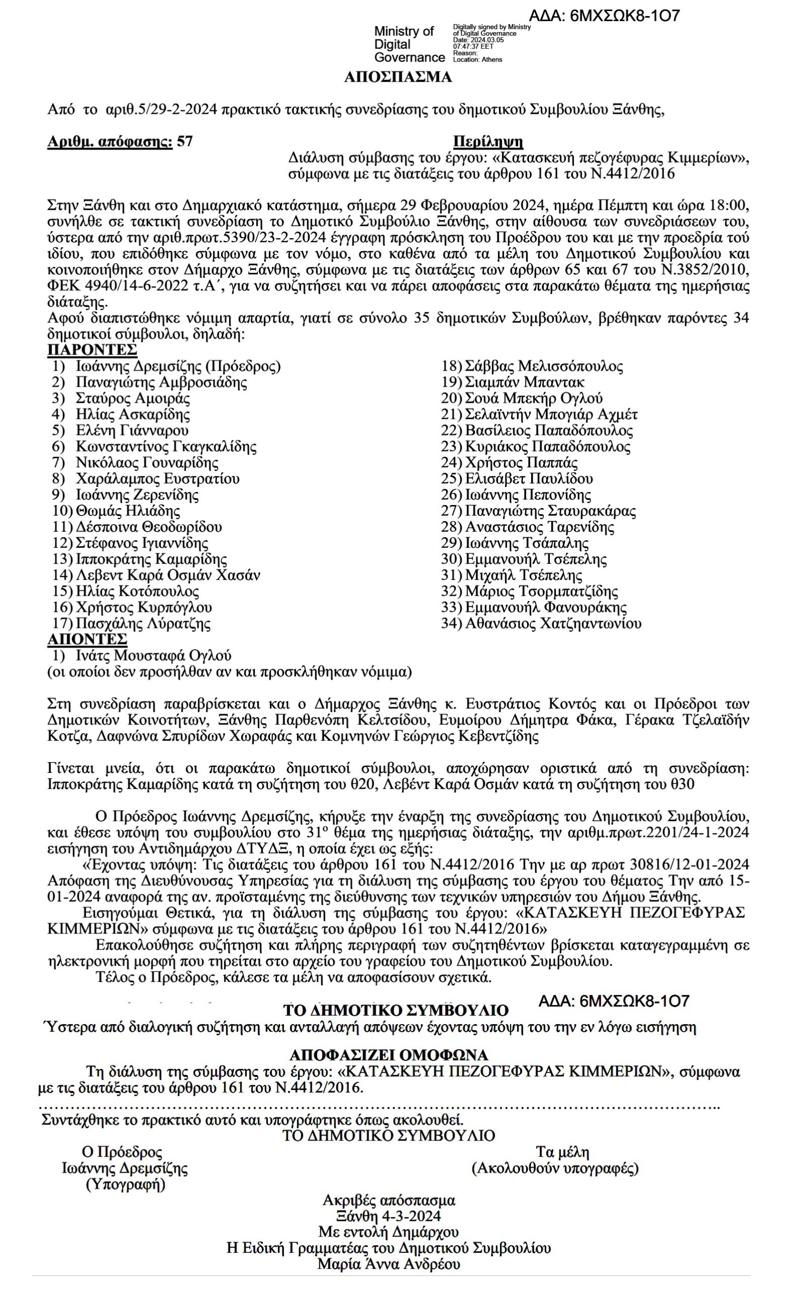 Από το αριθ.5/29-2-2024 πρακτικό τακτικής συνεδρίασης του δημοτικού Συμβουλίου Ξάνθης,