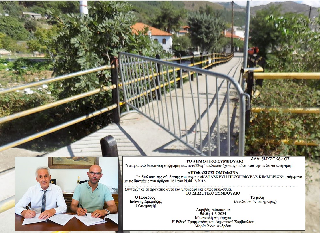 Διάλυση σύμβασης του έργου: «Κατασκευή πεζογέφυρας Κιμμερίων», σύμφωνα με τις διατάξεις του άρθρου 161 του Ν.4412/2016