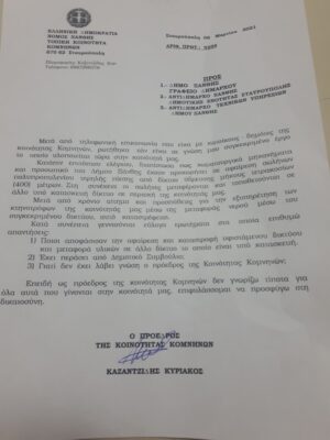 3) Γιατί δεν έχει λάβει γνώση ο πρόεδρος της Κοινότητας Κομνηνών;