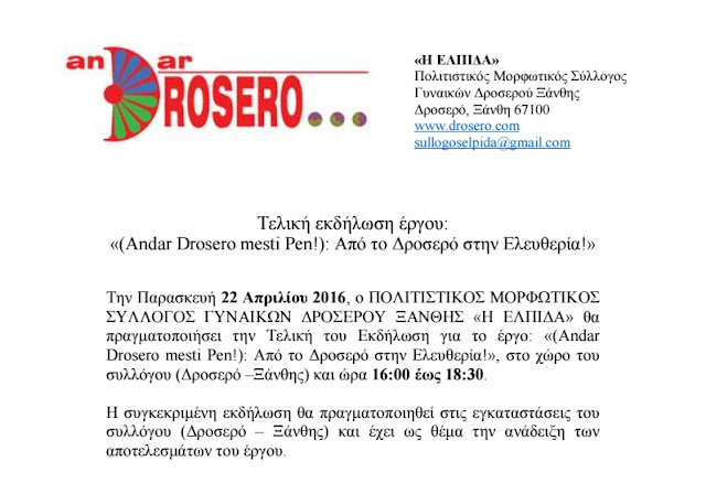 Σημαντική εκδήλωση σήμερα στο Δροσερό Ξάνθης απο τον Σύλλογο της Σαμπιχά