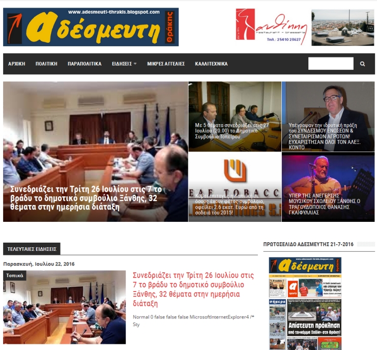 Συνεχίζουμε και τον Ιούλιο 2016 ακόμη πιο ανανεωμένοι στο νέο adesmeuti-thrakis.blogspot.com, με στόχο την εγκυρότητα και αξιοπιστία της είδησης στα