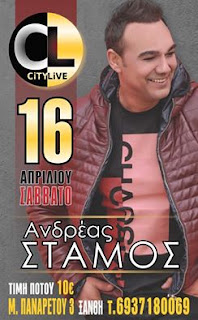 αυτό το Σάββατο 16 Απριλίου! Ένας τραγουδιστής που έχουμε αγαπήσει και