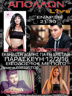 αγάπης με φιλανθρωπικό χαρακτήρα για τη Χριστίνα στις 21.30 στο κέντρο