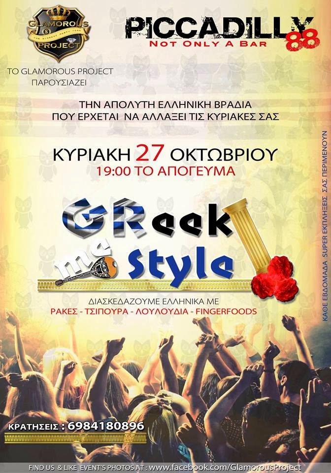 Οπό αυτήν την ΚΥΡΙΑΚΗ 27/10 και ΚΑΘΕ ΚΥΡΙΑΚΗ ΑΠΟΓΕΥΜΑ το PICCADILLY 88 σας