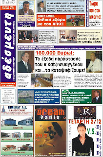 Η ΠΡΩΤΗ ΣΕΛΙΔΑ ΤΗΣ ΕΦΗΜΕΡΙΔΑΣ