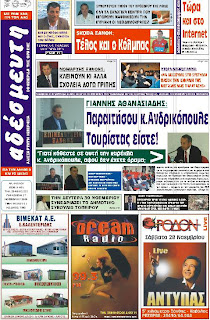 Η ΠΡΩΤΗ ΣΕΛΙΔΑ ΤΗΣ ΕΦΗΜΕΡΙΔΑΣ