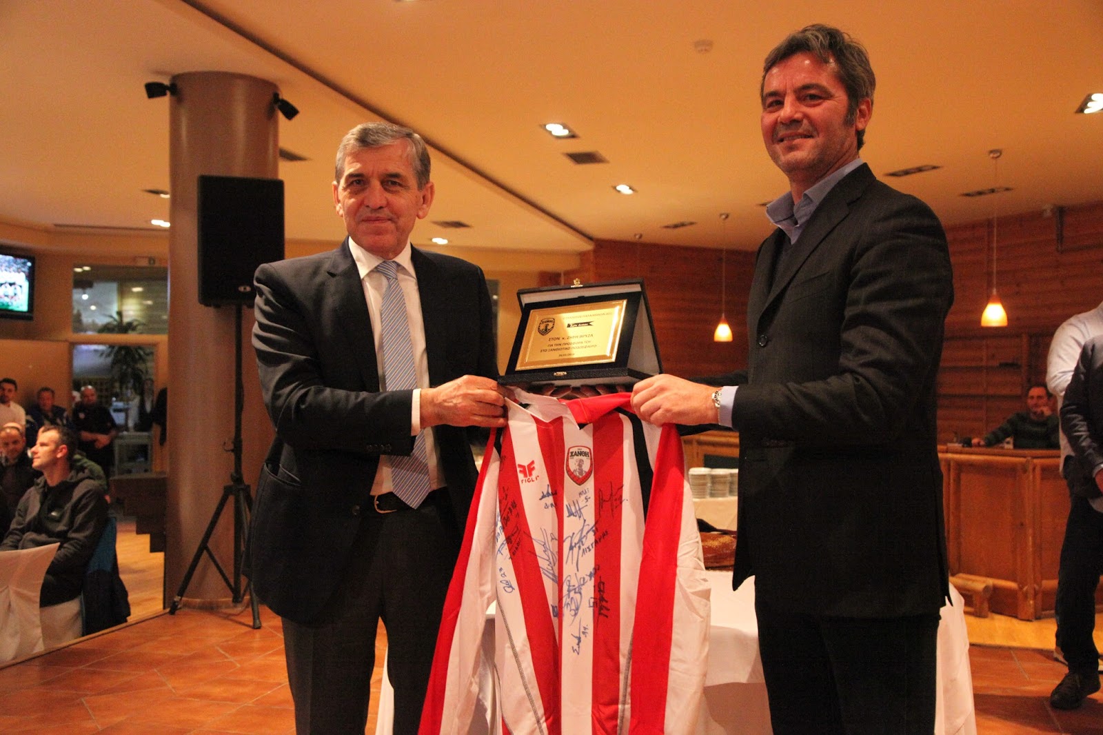 τιμητική πλακέτα του παρέδωσε ο Επίτιμος Πρόεδρος του Συλλόγου Παλαιμάχων ΑΟΞ