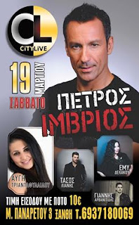 *Συνεχίζω με την αποψινή εμφάνιση του Πέτρου Ίμβριου στο «CITY Live» στο πλευρό του οποίου