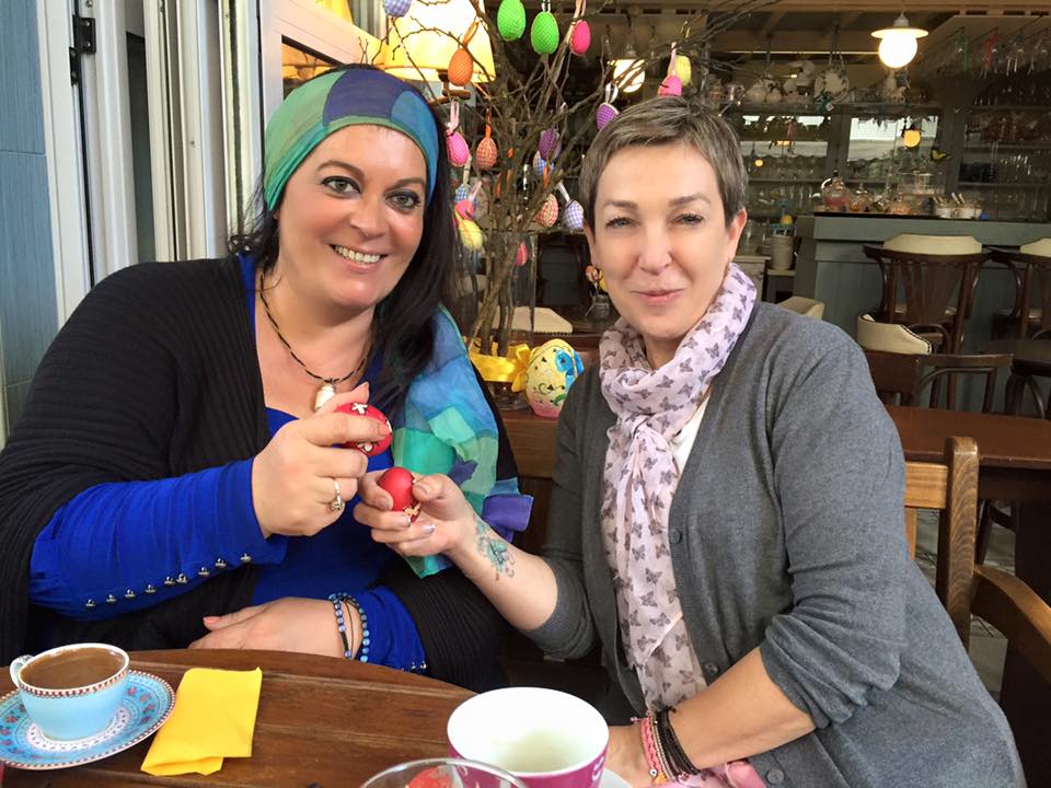 * Έγραψα προ ημερών για το πόσο εντυπωσιασμένη έμεινε η  σεφ Μαρία Εκμεκτσίογλου κατά την επίσκεψη της στη Ξάνθη από το «La Mariposa» της Βιργινίας Δαλάτση πλην όμως δεν είχα και δημοσιεύσει και το αντίστοιχο φωτογραφικό υλικό! Να λοιπόν οι δυο υπέροχες κυρίες σήμερα οι οποίες ήπιαν τον καφέ τους και τσούγκρισαν τα αβγουλάκια τους! Βιργινία- Μαρία σημειώσατε 1! Σας αγαπάμε!