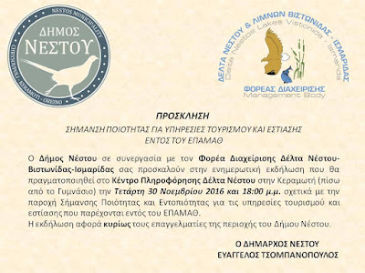 Νέστου- Βιστωνίδας-Ισμαρίδας σας προσκαλούν στην ενημερωτική εκδήλωση που θα πραγματοποιηθεί στο Κέντρο