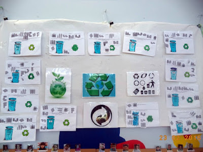 επίσκεψη στους χώρους με τους μπλε κάδους ανακύκλωσης, έξω από τον παιδικό για να τοποθετηθούν υλικά