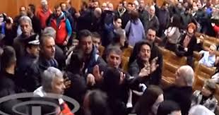 κτηνοτρόφοι μπήκαν στο αμφιθέατρο για να διαμαρτυρηθούν για το προς ψήφιση