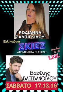 Βαξεβάνογλου με αφορμή το live του με την υπέροχη Ροδιάννα Σαλπιγκίδου αύριο Σάββατο 17/12