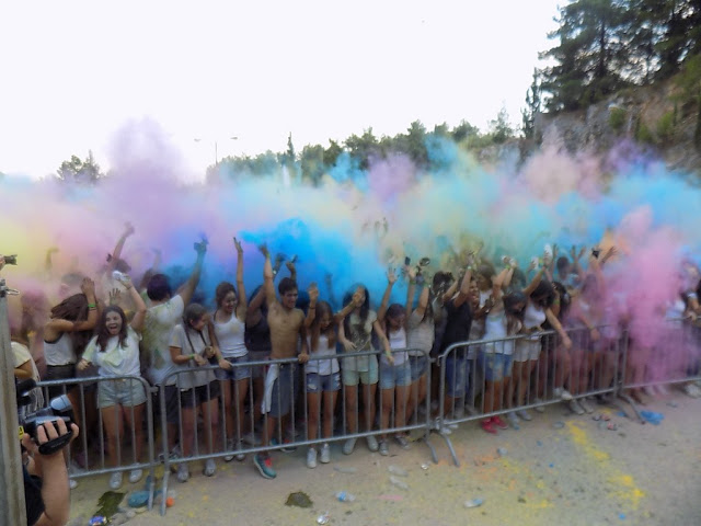 σακουλάκια με την πούδρα χρώματος και στη συνέχεια διασκέδασαν συμμετέχοντας