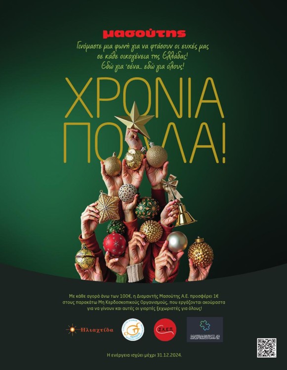 Η Διαμαντής Μασούτης Α.Ε. για μια ακόμη χρονιά πραγματοποίησε στις γιορτές μια σημαντική δράση κάνοντας πράξη την αλληλεγγύη. Μέσα από μία συλλογική προσπάθεια συγκεντρώθηκαν 40.000 ευρώ τα οποία διατέθηκαν για την ενίσχυση δομών που υποστηρίζουν άτομα με αναπηρία ή γενετική διαταραχή. Συγκεκριμένα, κάθε μία από τις παρακάτω δομές έλαβε 10.000 ευρώ: