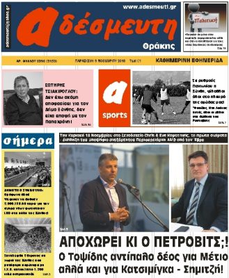 Ο Αντιπεριφερειάρχης Έβρου μάλλον δεν είδε το…ερωτηματικό στο πρωτοσέλιδο της «Αδέσμευτης» αν και δημοσιογράφος