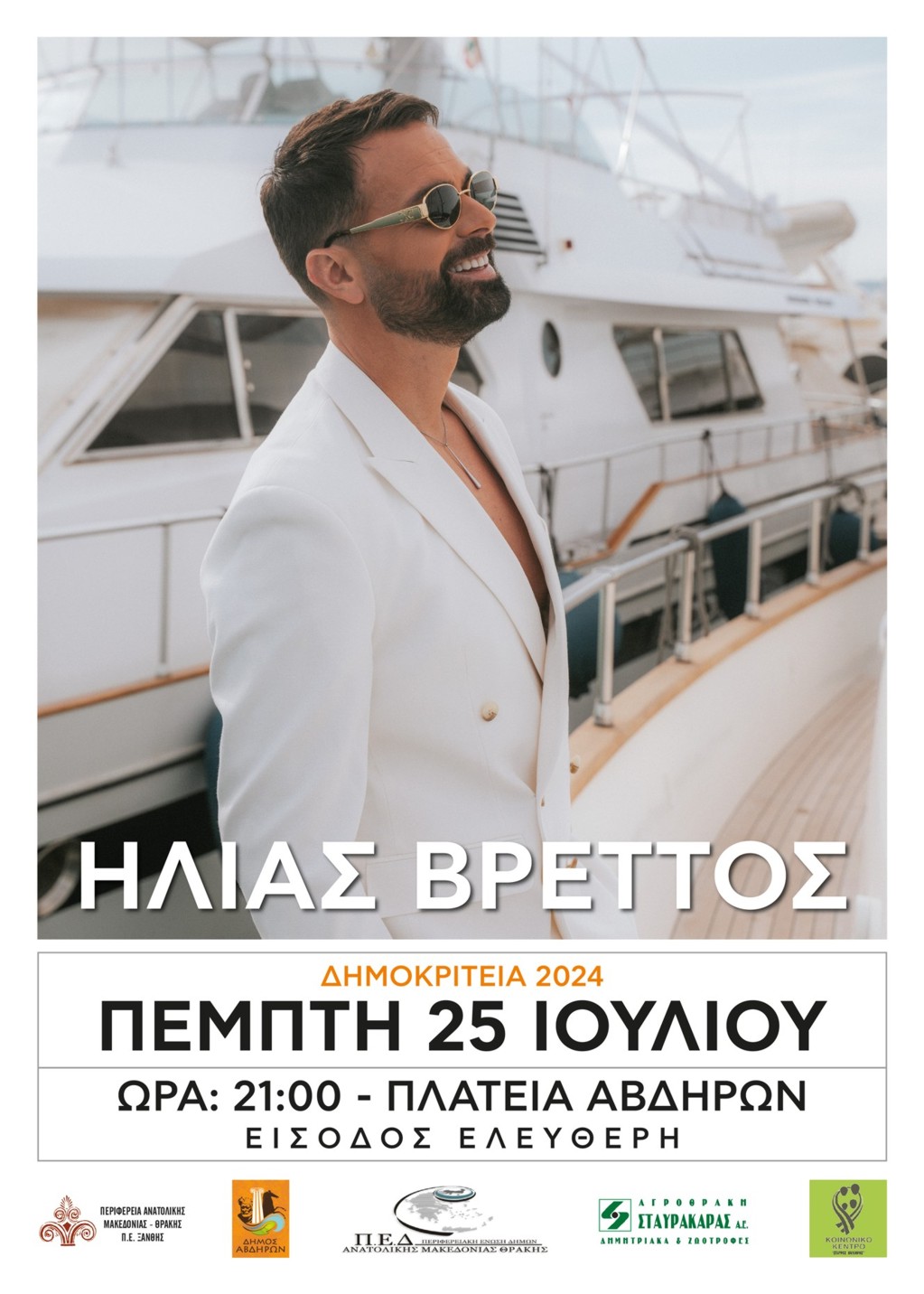 Ηλίας Βρεττός – 25 Ιουλίου στις 21:00 στα Άβδηρα