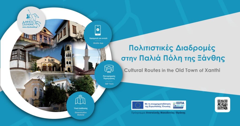 Ο Δήμος Ξάνθης ανακοινώνει την επιτυχή ολοκλήρωση του έργου “Πολιτιστικές Διαδρομές στην Παλιά Πόλη της Ξάνθης”, το οποίο υλοποιήθηκε στο πλαίσιο του “Επιχειρησιακού Προγράμματος «Ανατολική Μακεδονία, Θράκη» για την περίοδο 2021-2027”.
