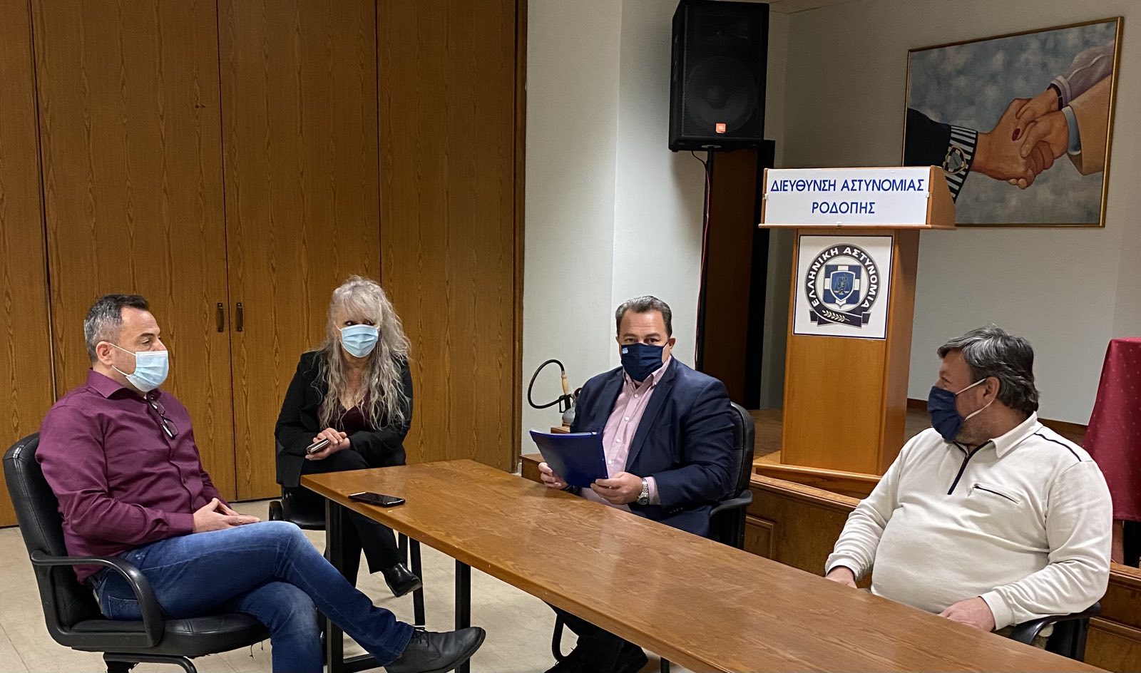 Με την Ένωση Αστυνομικών Υπαλλήλων Νομού Ροδόπης συναντήθηκε ο Βουλευτής της Νέας Δημοκρατίας Ευριπίδης Στ. Στυλιανίδης. Άκουσε τα προβλήματα και τις ανάγκες τους και συζήτησε επί μακρόν μαζί τους στο Αστυνομικό Μέγαρο Κομοτηνής πρωτοβουλίες που σκέφτεται να αναπτύξει προς την φυσική και πολιτική ηγεσία για τα προβλήματα της τοπικής Υπηρεσίας και κυρίως του προσωπικού.