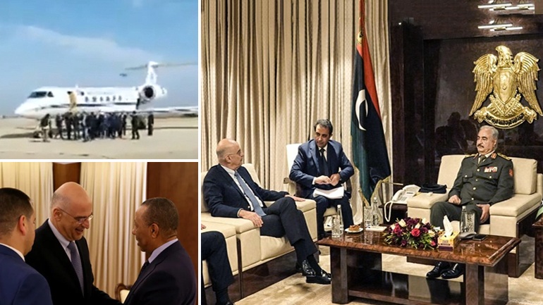 Ο υπουργός Εξωτερικών, Νίκος Δένδιας, μετέβη το πρωί της Κυριακής (22/12) στη Βεγγάζη της Λιβύης, όπου συναντήθηκε με τον επικεφαλής του Λιβυκού εθνικού στρατού, στρατάρχη Χαλίφα Χαφτάρ, σύμφωνα με ανακοίνωση του υπουργείου.