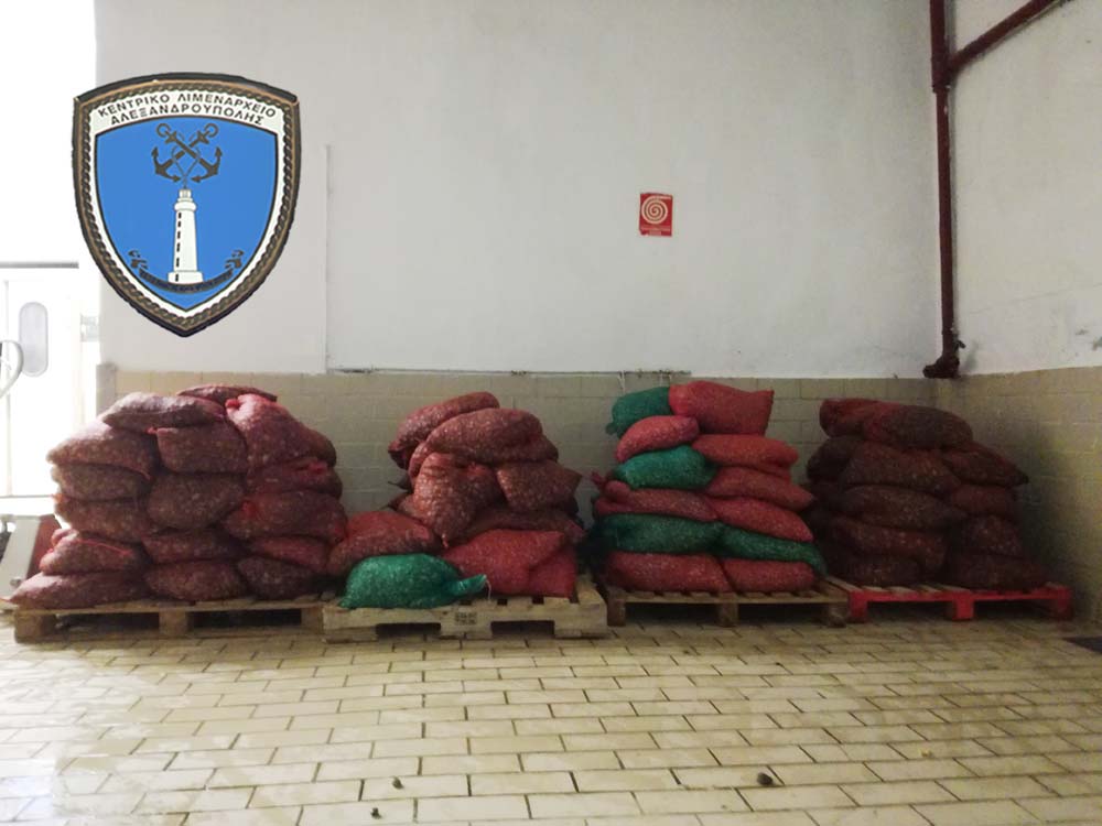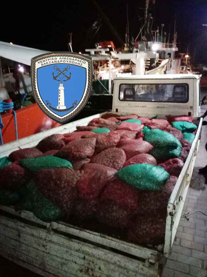 Το όχημα οδηγήθηκε από στελέχη της οικείας Λιμενικής Αρχής στην Ιχθυόσκαλα Αλεξανδρούπολης, όπου διαπιστώθηκε ότι ο ανωτέρω δράστης μετέφερε – διακινούσε εβδομήντα πέντε (75) σάκους δίθυρων μαλακίων του είδους αχιβάδα (ruditapes decussatus), συνολικού βάρους χιλίων εκατόν δέκα εννέα κιλών (1.119 kg) το μεγαλύτερο μέρος των οποίων ήτοι εξήντα οχτώ (68) σάκοι βάρους χιλίων είκοσι κιλών (1020kg) υπολειπομένων διαστάσεων (από 3,3εκ. έως 3,9εκ. κάτω του επιτρεπόμενου ελάχιστου μεγέθους των 4,5εκ.) , και σαράντα δύο (42) σάκους δίθυρων μαλακίων του είδους τελλίνα (donax truncullus), συνολικού βάρους οχτακοσίων είκοσι ενός κιλών (821 kg) το μεγαλύτερο μέρος των οποίων ήτοι τριάντα (30) σάκοι βάρους εξακοσίων τεσσάρων κιλών (604kg) υπολειπομένων διαστάσεων (από 2,2εκ. έως 2,8εκ. κάτω του επιτρεπόμενου ελάχιστου μεγέθους των 3,0εκ.).
