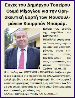 ΕΥΧΕΣ ΤΟΥ ΔΗΜΑΡΧΟΥ ΤΟΠΕΙΡΟΥ ΘΩΜΑ ΜΙΧΟΓΛΟΥ ΓΙΑ ΤΟ ΚΟΥΡΜΠΑΝ ΜΠΑΪΡΑΜ