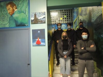 Oι βραβευθέντες μαθητές οι οποίοι ποζάρουν εδώ, με φόντο την κλίμακα Βαν Γκογκ, έργο του κ. Ευάγγελου Κιατίπη, ο οποίος φιλοτέχνησε εσωτερικά όλο το Σχολείο με τους 40 πίνακες του διακεκριμένου εικαστικού, καθιστώντας το Πηγή Ζωής, μοναδικό, ανεπανάληπτο.
