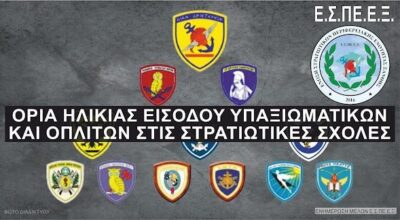 – επιμήκυνσης των ηλικιακών ορίων εισαγωγής στις ανωτέρω σχολές, οριζοντίως, στα είκοσι πέντε (25) έτη, τόσο για τις Σχολές Αξιωματικών, όσο και για αυτές των Υπαξιωματικών και