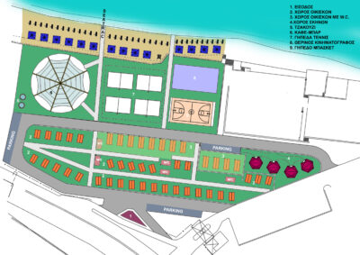 δραστηριότητες που σχεδιάζονται. Δραστηριότητες αθλητικές (καλαθοσφαίριση, αντισφαίριση, πετοσφαίριση, κανο καγιάκ κ.ά.), ψυχαγωγικές (προσβάσιμες προβολές ταινιών για κωφά και τυφλά άτομα, ψάρεμα, προσβάσιμο μπαρ, πλήρης πρόσβαση στην θάλασσα κ.ά.) και θεραπευτικές/εκπαιδευτικές στον χώρο της κινητικής και της αναπτυξιακής βλάβης (εκπαιδευτικά καμπ, υδροθεραπεία κ.ά.)