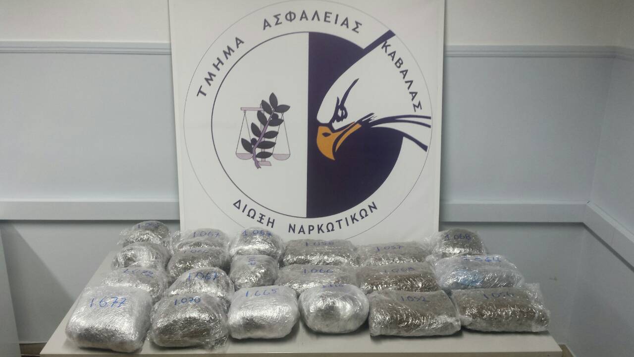 Κατά τη διάρκεια της αστυνομικής επιχείρησης εντοπίσθηκε ο 38χρονος να οδηγεί Ι.Χ.Ε. αυτοκίνητο και να λειτουργεί ως προπομπός σε έτερο Ι.Χ.Ε. αυτοκίνητο που οδηγούσε ο 19χρονος, με το οποίο μετέφεραν στην πόλη της Καβάλας πάνω από 22 κιλά ακατέργαστης κάνναβης, με σκοπό να τα παραδώσουν στον 29χρονο.