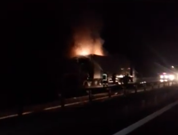 Φορτηγό τυλίχθηκε στις φλόγες στην Εγνατία οδό! (vid)