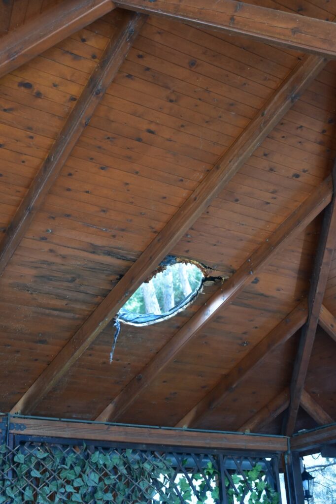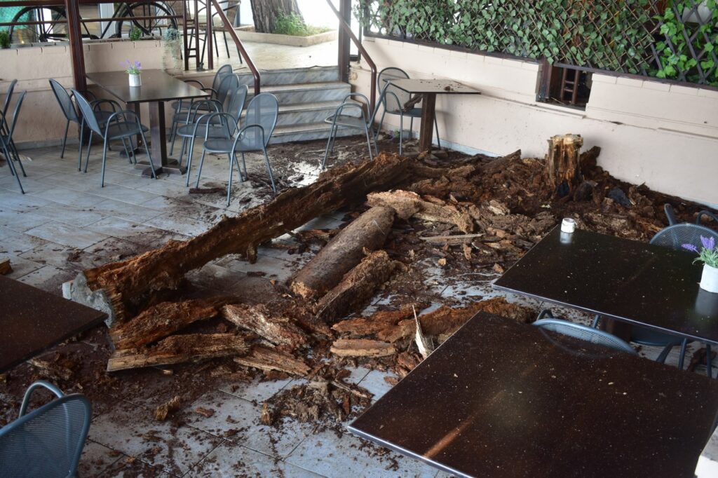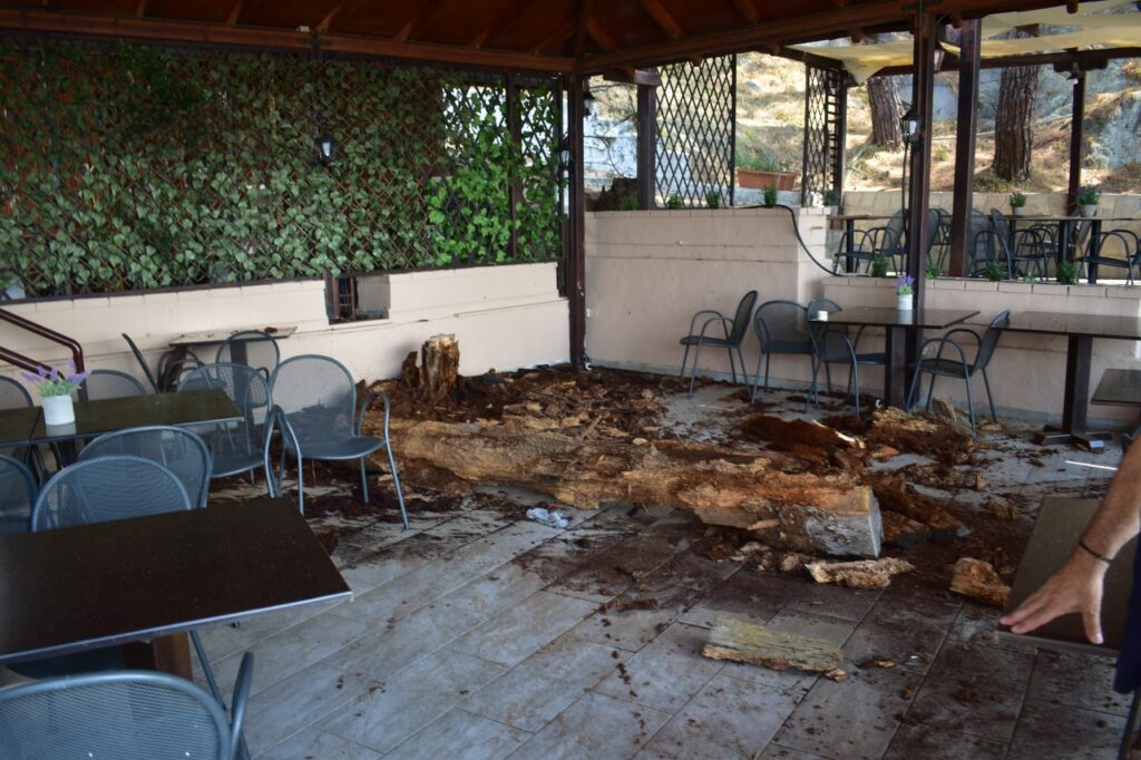 Οι δράστες κατέστρεψαν το κιόσκι που είχε αντίστιξη το δέντρο και από θαύμα δεν έγινε «μπουρλότο» όλη η περιοχή! Είχαν και…γκαζάκι μαζί τους οι νεαροί δράστες, χαμός γίνεται κάθε βράδυ στην περιοχή!
